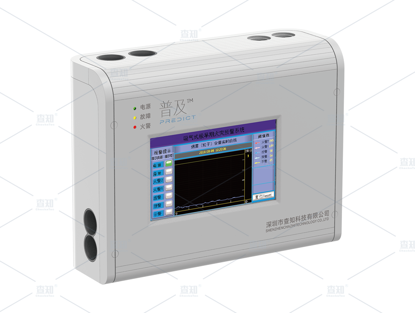 普及™独立激光腔体型吸气式烟雾探测器是基于对火灾极早期(过热、热失控、热辐射和可见烟雾生成阶段)的探测和预警进行设计研发的。